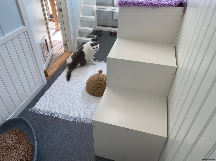 The Cottage bokas med fördel för kattungar, äldre katter och katter med funktionsnedsättning. The Cottage går att boka för vistelse under sommaren.
